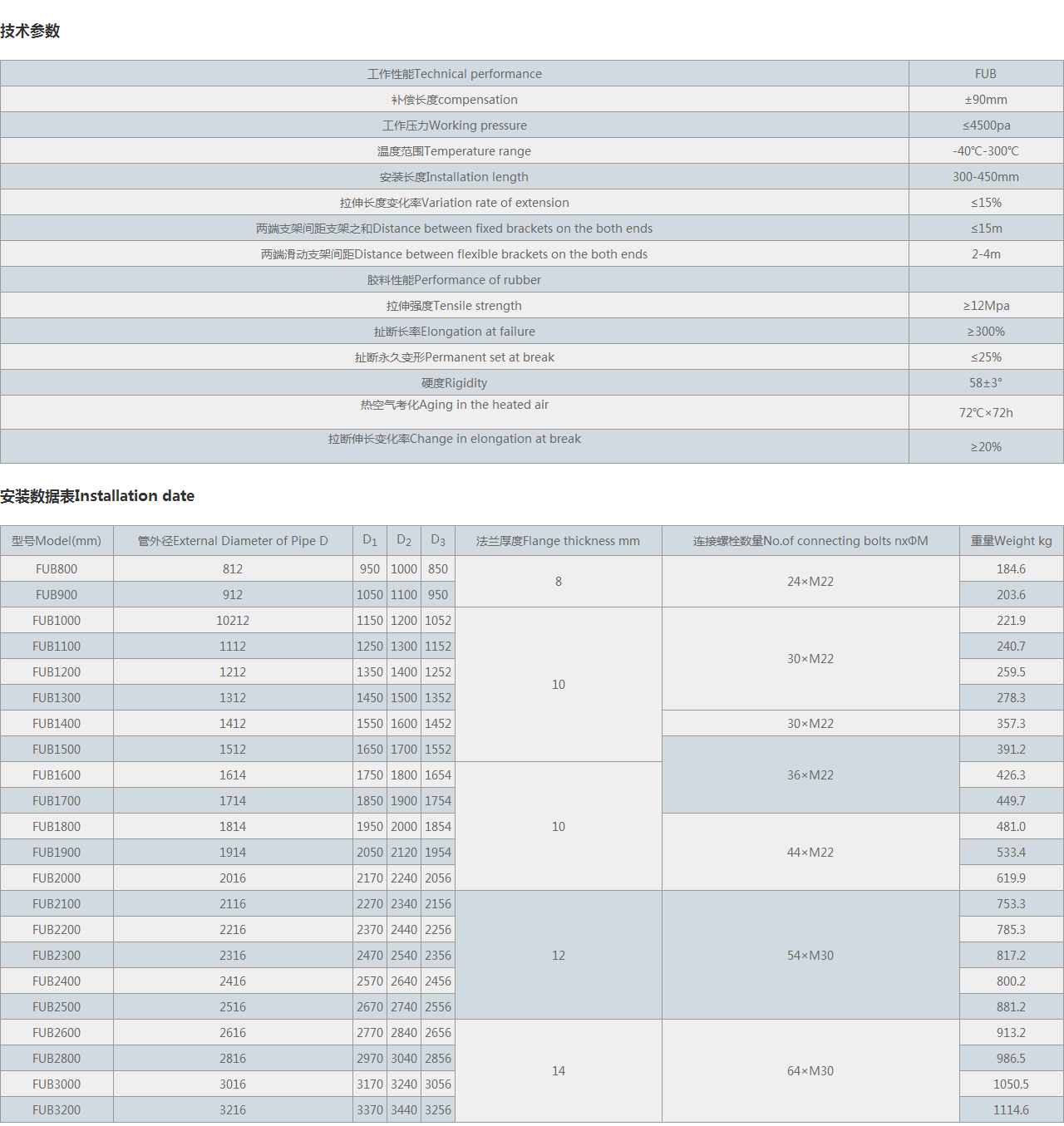| FUB2100 | 2116 | 2270 | 2340 | 2156 | 12 | 54×M30 | 753.3 |